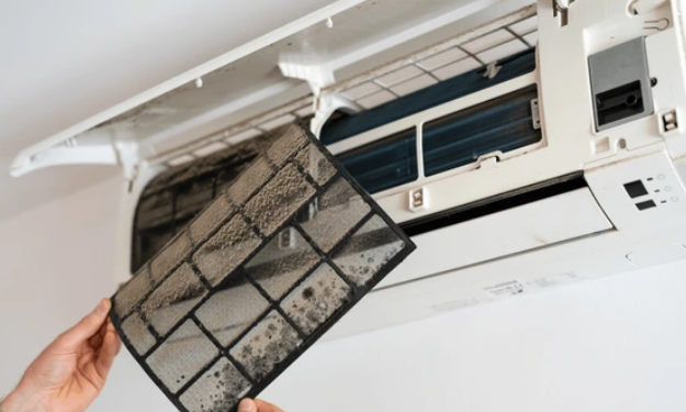 A clogged air filter can cause freezing inside the AC and melting water leaks later.