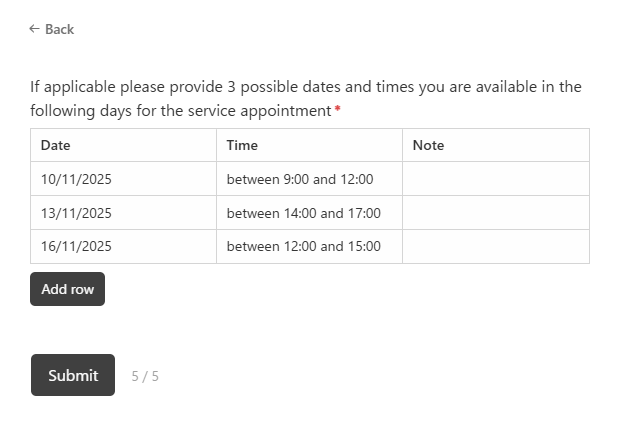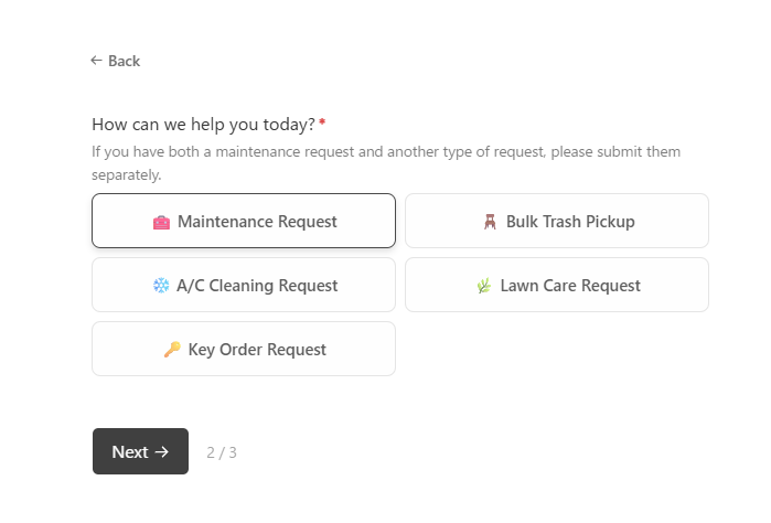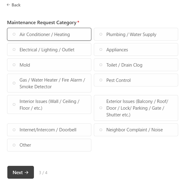 3. Choose a maintenance you want to submit (only 1 option per request)